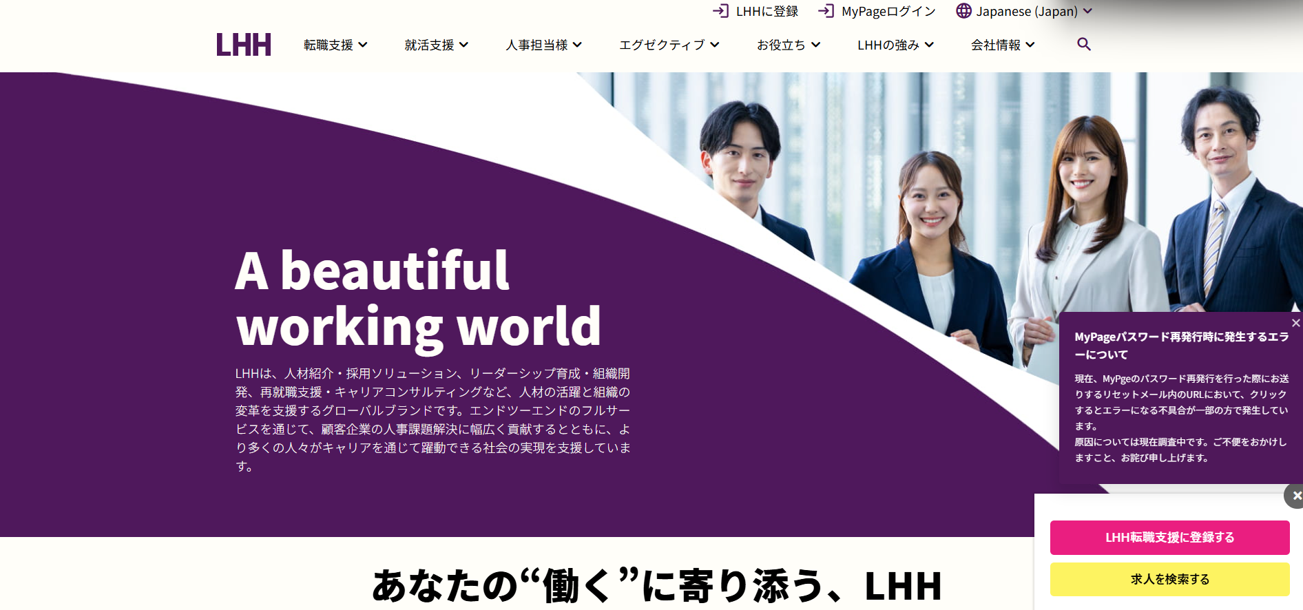 LHH転職エージェントは、アデコグループが運営し、年収アップ実績が多数ある総合人材紹介会社です。